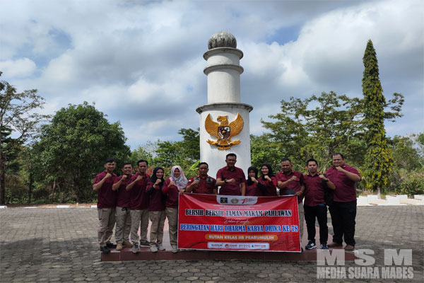 MediaSuaraMabes, Prabumulih (Sumsel) – Menyambut peringatan Hari Dharma Karya Dhika (HDKD) ke-78 Kemenkumham RI Tahun 2023, Rumah Tahanan Negara (Rutan) Kelas IIB Prabumulih menggelar kegiatan Bersih-Bersih di Taman Makam Pahlawan (TMP) Kesuma Bangsa Kota Prabumulih, Kamis (03/08/2023).