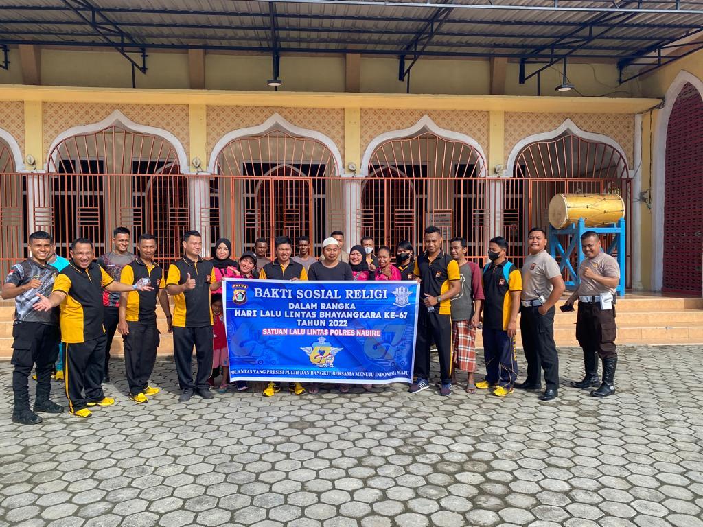 MediaSuaraMabes, Nabire – Dalam rangka menyambut Hari Lalu Lintas Bhayangkara Ke – 67 Tahun 2022, Satuan Lalu Lintas Polres Nabire menggelar kegiatan bakti sosial religi dengan membersihkan 4 tempat ibadah di Nabire, Jumat (16/9).