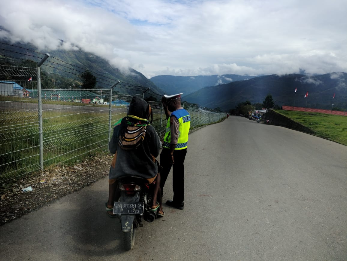 SuaraMabes, Jayapura – Pada hari Minggu tanggal 29 Agustus 2021, Sat Lantas Polres Tolikara kembali melaksanakan Strong Point ke Jalan guna memberikan imbauan Prokes dan edukasi aturan berlalu lintas kepada para pengendara.
