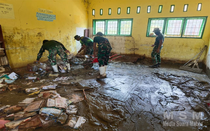 MediaSuaraMabes, Tapanuli Selatan – Satgas Penanggulangan Bencana Alam (Gulbencal) Kodam I/Bukit Barisan melakukan pembersihan SD Negeri (SDN) No 101305 di Desa Bandar Tarutung, Kecamatan Angkola Sangkunur, Kabupaten Tapanuli Selatan, sebagai bagian dari upaya pemulihan sarana pendidikan pascabencana, Selasa (27/1/2026).