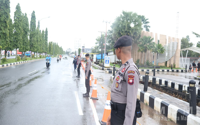MediaSuaraMabes, Kalbar – Satgas Operasi Mantap Brata (OMB) Kapuas 2024 Kepolisian Daerah Kalimantan Barat melakukan pengamanan terhadap seluruh rangkaian kampanye Terbuka Ketua umum PSI Kaesang Pangarep di Qubu Resort, Kabupaten Kubu Raya, Selasa (30 Januari 2024).