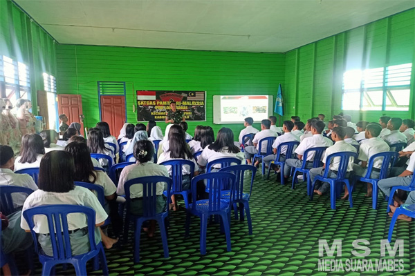 MediaSuaraMabes, Kaltim – Peduli terhadap generasi penerus bangsa, Anggota Satgas Pamtas Yonarmed 5 Pancagiri melaksanakan kegiatan penyuluhan di daerah perbatasan, kepada kepada Pelajar SMAN 1 Long Apari mengenai bahaya penyalahgunaan narkoba dan seks bebas.
