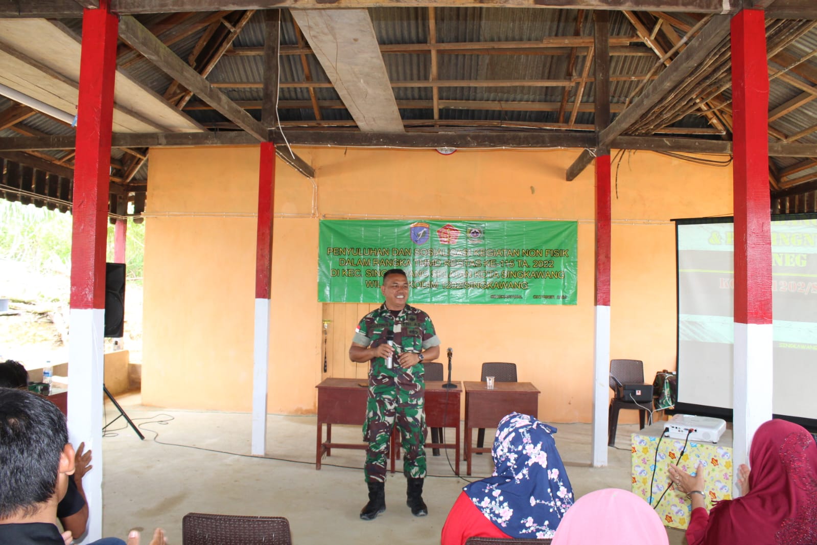 Penyuluhan yang dilaksanakan di lokasi TMMD tersebut dihadiri oleh Pasi ter Kodim 1202/Skw, Lettu Inf Agustinus