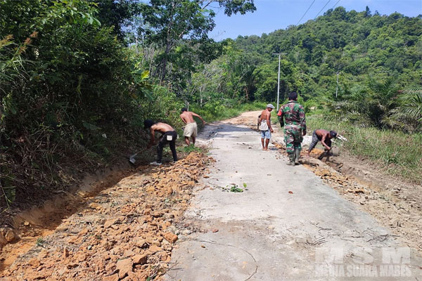 Satgas TMMD Imbangan Ke-117 Bersama Masyarakat Selesaikan Galian Saluran Air