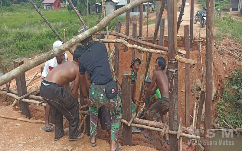 MediaSuaraMabes, Sanggau – Satuan Tugas TNI Manunggal Membangun Desa (TMMD) terus mengerjakan sasaran diantaranya sasaran pembuatan jembatan,yang pada hari ini mulai proses pemasangan tiang pancang jembatan yang Berada Di Dusun Selabe Desa Muara Ilai Kecamatan Beduai Kabupaten Sanggau.Minggu(26/05/2024)