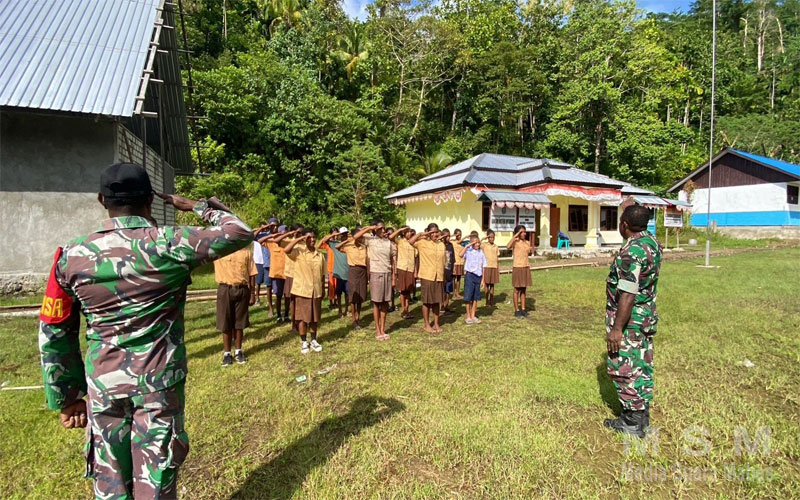 MediaSuaraMabes, Yapen – Di Sela-sela tugas dan kewajibannya untuk melaksanakan Program Fisik Pembangunan Rumah TMMD, Personel Satgas TMMD ke-121 Kodim 1709/Yawa Serka Coristo Mansnembra dan Serda Yunus Mamani meluangkan waktunya guna menanamkan sikap disiplin bagi generasi muda yang ada di SMPN Kampung Perea, Distrik Nusawani, Kabupaten Kepulauan Yapen, Jumat (02/08/2024).