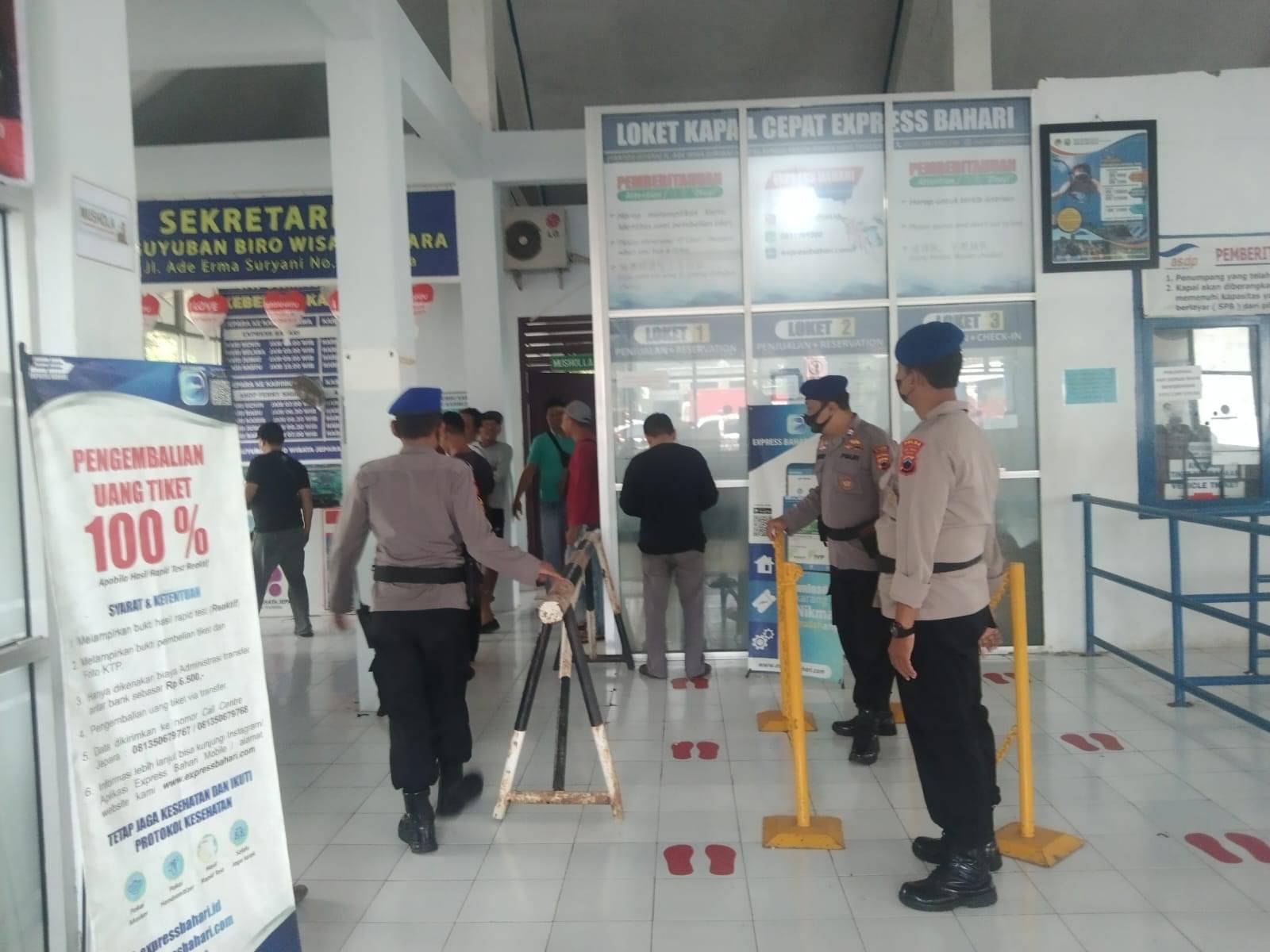 MediaSuaraMabes, Jepara – Upaya menciptakan situasi yang aman dan kondusif pada saat berlangsungnya kegiatan penyeberangan, pihak Kepolisian dari Satuan Polisi Perairan (Satpolair) Polres Jepara tingkatkan kegiatan pengamanan dan pengaturan terhadap calon penumpang kapal di dermaga pelabuhan penyeberangan Kartini Jepara, Senin (05/09/2022).