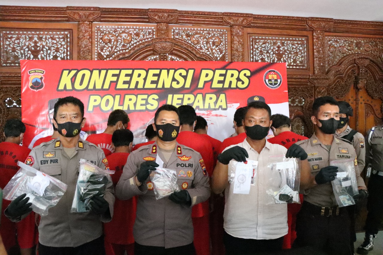 MediaSuaraMabes, Jepara – Kepolisian Resort Jepara Polda Jawa tengah berhasil mengungkap 9 kasus penyalahgunaan narkoba, dengan hasil kegiatan Ops Bersinar yang digelar selama bulan Januari sampai Februari tahun 2022 itu berhasil menangkap 11 tersangka. Kapolres Jepara AKBP Warsono, SH., SIK., MH., Dalam konferensi pers menyampaikan bahwa penangkapan tersangka tersebut selama masa operasi yang dijalankan Satresnarkoba Polres Jepara. Jum’at, 4/3/2022.