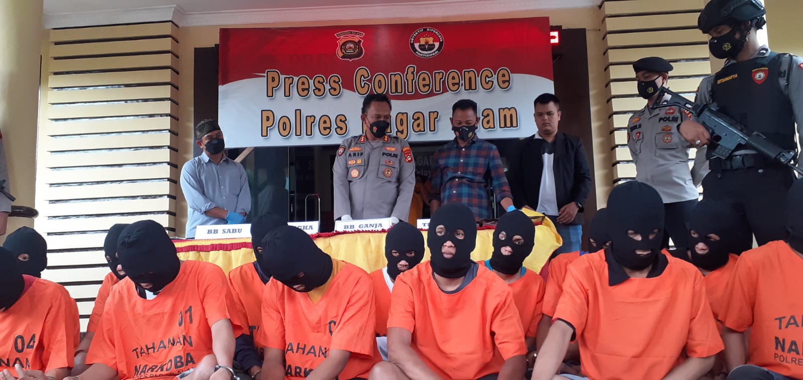 Kapolres mengatakan, dari 16 terduga pelaku penyalahgunaan narkotika ini, petugas berhasil menyita barang bukti dengan total keseluruhan 209,87 gram dan jenis ganja seberat 1.007,9 gram.