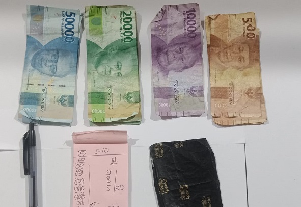 “Adapun barang bukti yang diamankan yaitu dari pelaku M adalah Uang sebesar Rp. 525.000,- 1 Ball Kupon Togel warna Putih, 1 ball Kupon Togel warna Kuning, 1 lembar kertas karbon warna Hitam dan 1 buah kalkulator warna Hitam,” ucap Kasat Reskrim.