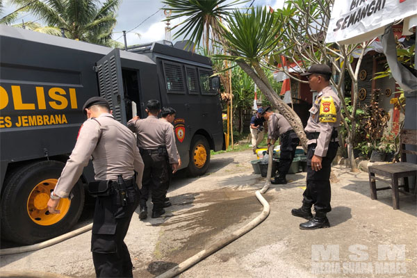 Satuan Samapta Polres Jembrana Berikan Bantuan Air Bersih Untuk Masyarakat Pendem Dalam Mengatasi Krisis Kekurangan Air