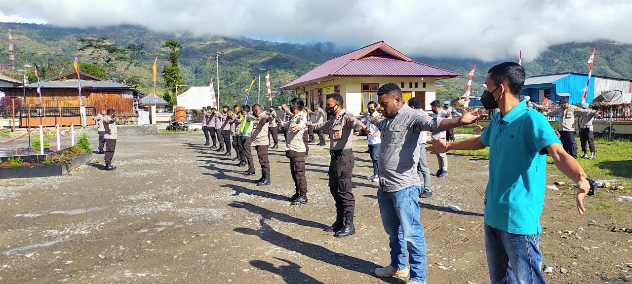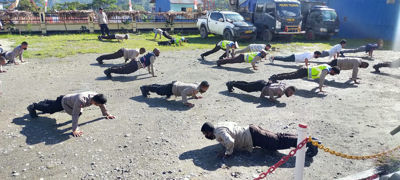 Seperti biasanya kegiatan olahraga rutin dimulai setelah personel selesai melaksanakan apel pagi yang dipimpin Wakapolres Tolikara AKBP Yosep G. Geleuk.