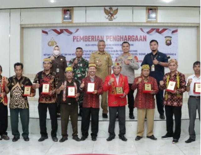 Kapolres Bengkayang memberikan penghargaan kepada Ketua DAD Bengkayang Martinus Kajot, S.M, Ketua DAD Samalantan Zainal, Ketua DAD Kec. Bengkayang Yulius Heri, Ketua DAD Monterado Paulus, Ketua DAD Seluas Gustian Andiwinata, Ketua DAD Capkala Marikus Ikong, Ketua DAD Siding Gregorius Gunawan, Ketua DAD Suti Semarang Samuel, Ketua DAD Teriak Petrus, Ketua DAD Ledo Anton dan Yayasan Planet Indonesia Kalbar.