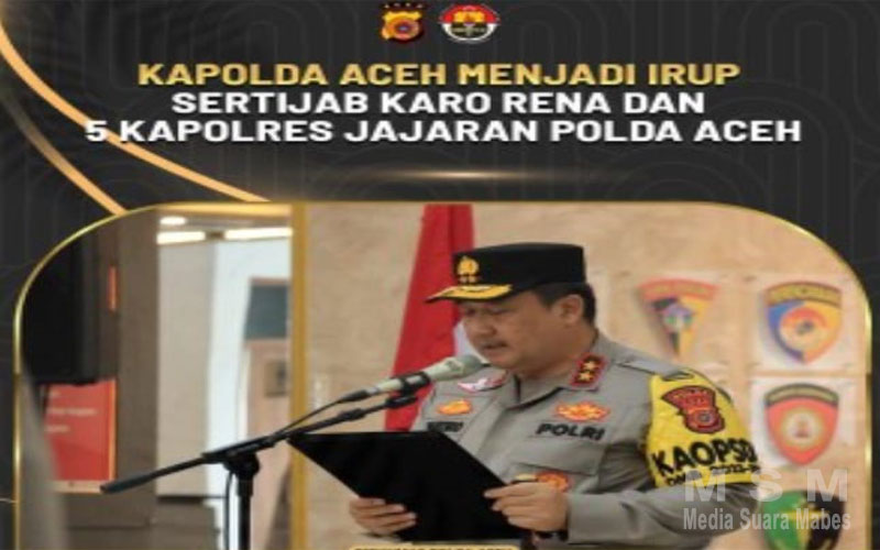 Pejabat Utama Polda Aceh yang Sertijab hari ini adalah Karo Rena Polda Aceh dari Kombes Pol. Wandy Rustiwan, S. I. K., M. M. Tr, yang mendapat tugas sebagai Widyaiswara Kepolisian Madya TK II Sespimmen Sespim Lemdiklat Polri, kepada Kombes Pol. Mulyadi, S. E, yang sebelumnya menjabat Karo Rena Polda Papua dan 5 Kapolres Jajaran Polda Aceh.