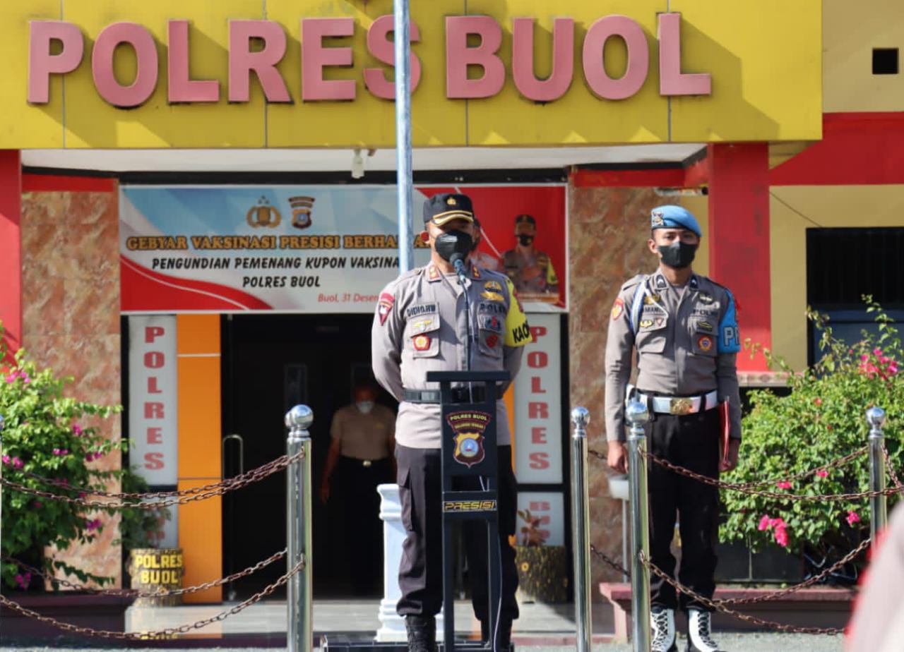 MediaSuaraMabes, Buol – Dalam rangka pengamanan unjuk rasa oleh Aliansi Masyarakat Peduli Buol (AMPB). Kapolres Buol AKBP Dieno Hendro Widodo, S.I.K. Pimpin apel gabungan ratusan Personel TNI-POLRI.