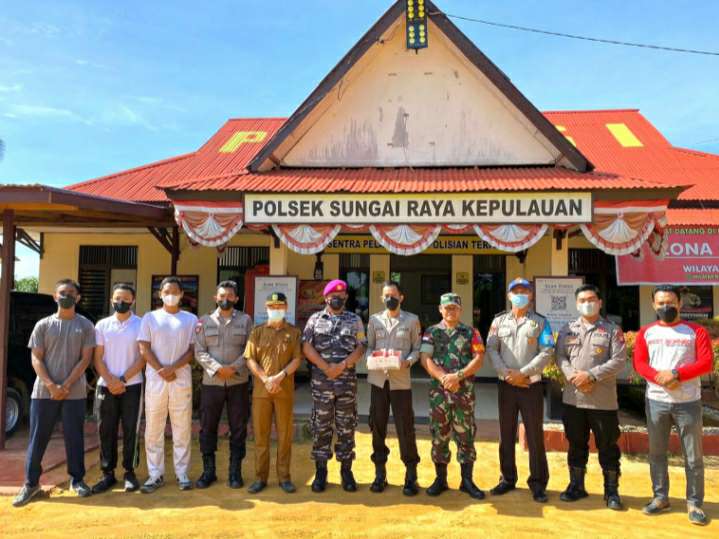 MediaSuaraMabes, Bengkayang Kalbar – Sambut Hari Bhayangkara ke-76 tahun 2022, yang jatuh pada hari Jum’at 1 Juli 2022, Babinpotmar Serka Johari, Babinsa Karimunting Sertu Sugianto dan Kepala Dusun Teluk Suak Kiung Fung Liung mewakili Pemerintahan Kecamatan Sungai Raya Kepulauan berikan ucapan selamat hari Bhayangkara ke 76 di Polsek Sungai Raya Kepulauan Polres Bengkayang Polda Kalbar pad Jum’at (1/7/2022) pagi