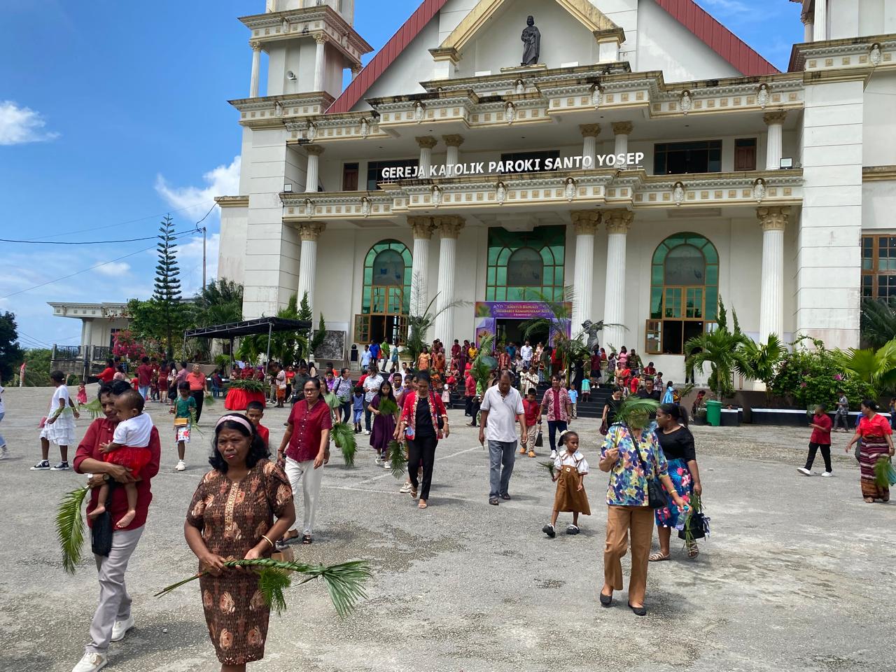 MediaSuaraMabes, Fakfak Papua Barat – Sinergitas TNI–Polri kembali terlihat dalam pengamanan ibadah Minggu Palem di Gereja Katolik Paroki St. Yosep, Kabupaten Fakfak, Minggu (29/3/2026).
