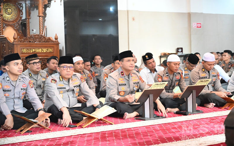 Kegiatan ini berlangsung di Masjid Al Ikhlas Polda Jambi dan diikuti oleh personel Polda Jambi serta Polres/Ta jajaran melalui Zoom Meeting.
