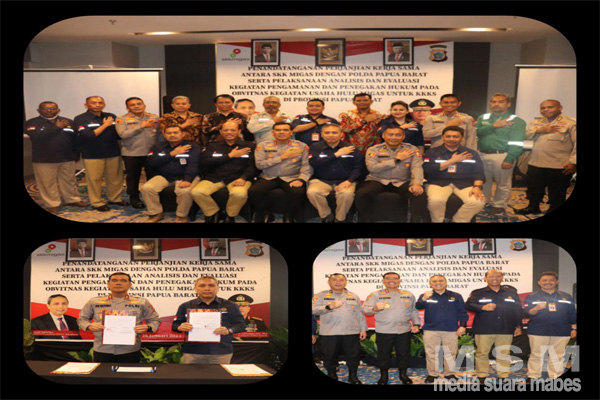 MediaSuaraMabes | Sorong – Deputi Dukungan Bisnis SKK Migas, dalam kunjungan kerjanya ke kantor Perwakilan SKK Migas Wilayah Papua dan Maluku, juga melaksanakan Kunjungan Kelembagaan dan melaksanakan penandatanganan Perjanjian Kerja Sama (PKS) Pengamanan Objek Vital Nasional dengan Polda Papua Barat pada Kamis, 26 Januari 2023, bertempat di Hotel Aston Sorong.