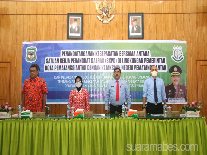 MediaSuaraMabes, Siantar – Satuan Kerja Perangkat Daerah (SKPD) Pemerintah Kota (Pemko) Pematangsiantar dan Kejaksaan Negeri (Kejari) Pematangsiantar menandatangani Kesepakatan dalam pelaksanaan Sosialisasi Peraturan Perundang-undangan tentang Peran Kejaksaan dalam Mewujudkan Tata Kelola Pemerintahan yang Baik di Kota Pematangsiantar. Penandatanganan kesepakatan tersebut langsung dihadir Plt Wali Kota Pematangsiantar dr Susanti Dewayani SpA, di kantor Kejari Pematangsiantar, Kamis (23/6/2022) mulai pukul 14.00 WIB.
