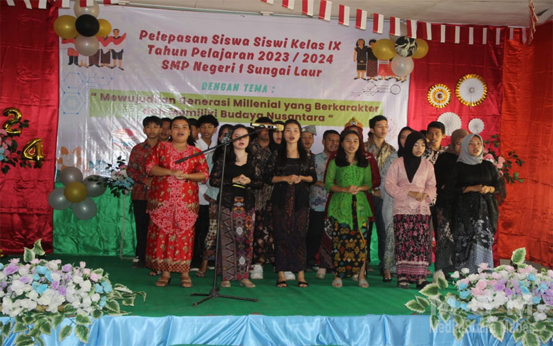 Sekolah menengah pertama SMP negeri 01 kecamatan sungai laur kabupaten Ketapang Kal-bar mengadakan acara pelepasan, perpisahan Siswa kelas sembilan (IX) setelah menyelesaikan ujian sumatif akhir tahun ajaran 2024.