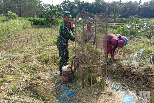 Dalam kesempatan itu, Babinsa Sertu Riyanto menyampaikan kegiatan ini bukan hanya ketika waktu memanen saja akan tetapi mulai dari bercocok tanam, hingga panen seperti sekarang ini.