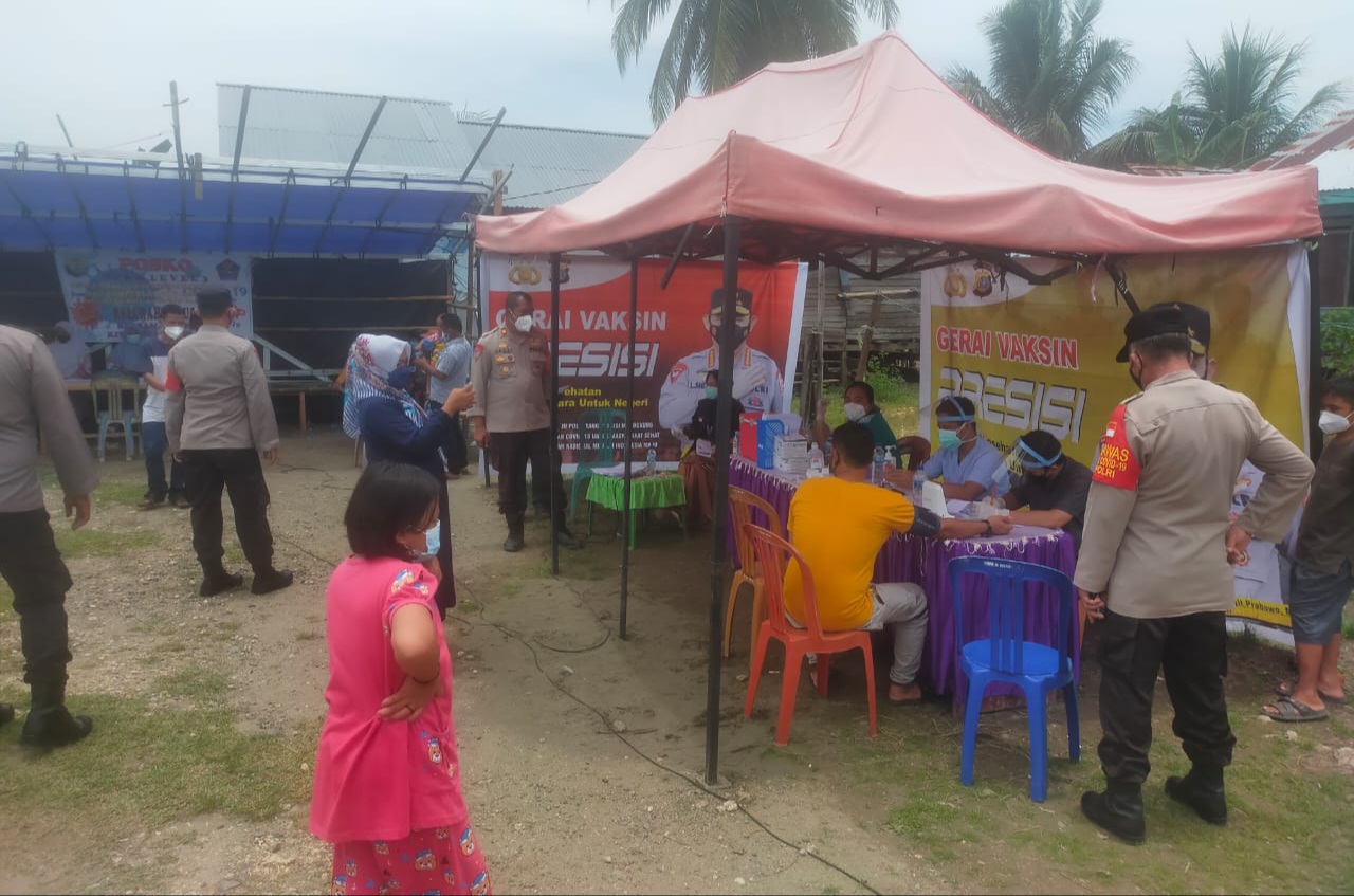 MediaSuaraMabes, Buol – Kepolisian Sektor Biau Polres Buol Bekerjasama dengan tenaga kesehatan Puskesmas Biau Kabupaten Buol, kembali melakukan pelayanan vaksinasi Covid-19 bagi masyarakat secara gratis, yang digelar di Gerai Vaksin Presisi” tepatnya di Lingkungan Tanjung Kelurahan Buol Kecamatan Biau, Sabtu (18/09/2021).
