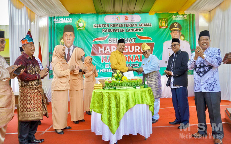 Dalam sambutannya Plt Bupati Langkat menyampaikan ucapan selamat hari guru ke 78 tahun kepada seluruh tenga pengajar yang ada di jajaran kementrian agama kabupaten Langkat terkhususnya, dan kepada seluruh guru di Indonesia.
