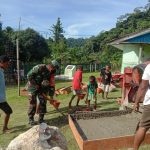 Babinsa Koramil 02/Napan Lasksanakan Karya Bakti Pembuatan Tugu Gereja Kampung Legari Jaya Distrik Makimi