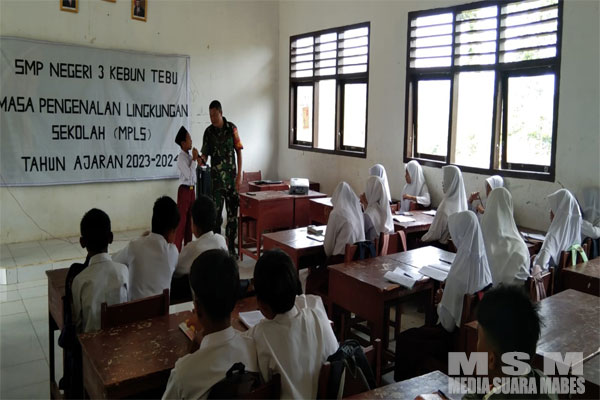 Kepada siswa-siswi SMPN 3 Kebun Tebu Sertu F Widodo mengajarkan pentingnya disiplin, jiwa patriotisme dan cinta tanah air kepada generasi muda.
