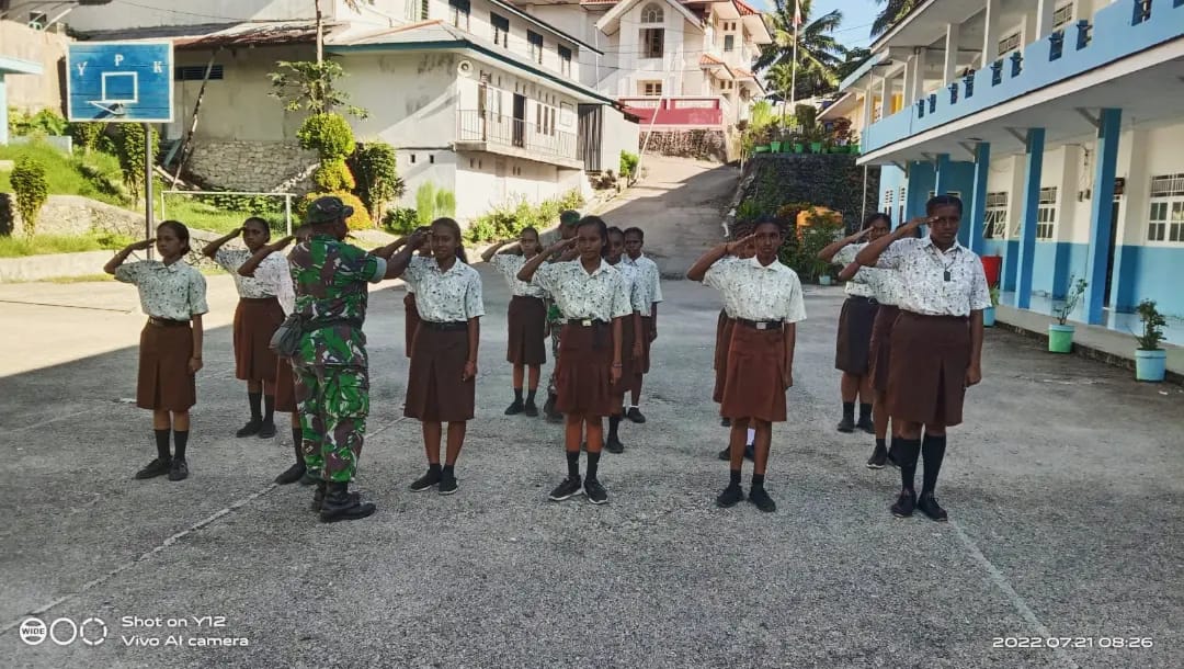 “Para siswa dan siswi merupakan generasi penerus bangsa sehingga perlu dipupuk rasa cinta tanah air dan bangsa sejak dini mulai dari lingkup yang terkecil yaitu lingkup Sekolah sehingga kedepan menjadi generasi yang tangguh,” Ucap Serka Ramli Nasir.