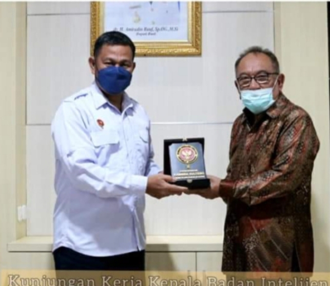 MediaSuaraMabes, Buol – Bupati Buol dr. H. Amirudin Rauf, Sp.Og, M.Si terima kunjungan Kepala Badan Intelijen Negara Daerah (KABINDA) Sulteng Brigjen TNI Andi Chandra As’aduddin, S.E, M.H. Bertempat di ruang kerjanya Jumat, 11 Februari 2022, Pukul 09.30 Wita