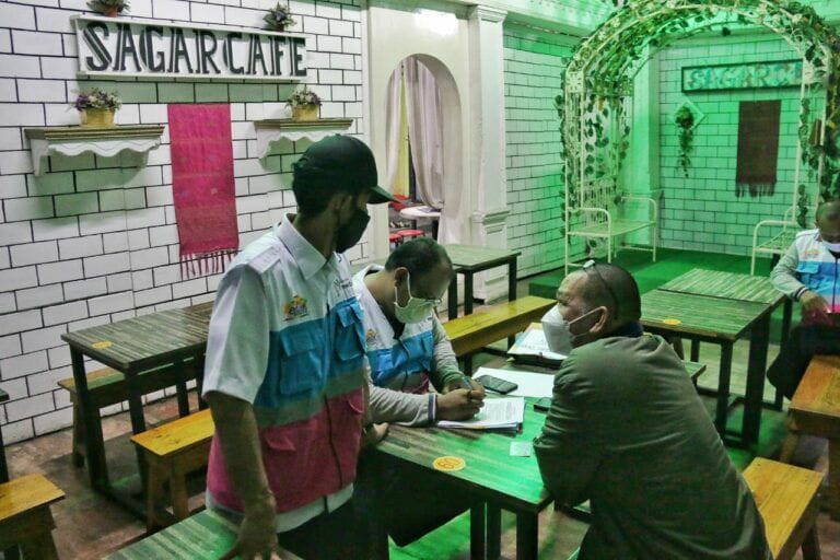 SuaraMabes, Medan – Petugas gabungan Pemko Medan yang tediri dari Dinas Pariwisata, Dinas Kominfo, Satpol PP dan dibantu aparatur TNI dan Polri, membubarkan sejumlah pengunjung cafe yang sedang asik bersantai. Hal tersebut terpaksa dilakukan petugas, mengingat sejumlah cafe telah melewati batas jam operasional yang telah ditentukan Pemko Medan. Hal ini berdasarkan Surat Edaran (SE) Wali Kota Medan No 440/4338 tentang perpanjangan Pembatasan Kegiatan Masyarakat Dalam Rangka Pengendalian Penyebaran Corona Virus Disease2019 (covid-19) di Kota Medan, Jum’at (4/6/2021).