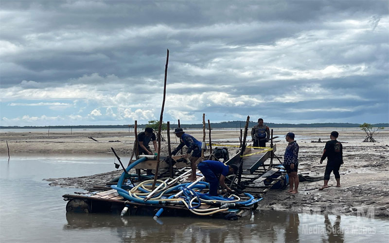 MediaSuaraMabes, Babel – Tim gabungan Polres Belitung melakukan penertiban aktivitas tambang pasir timah diwilayah perairan laut Dusun Ulim Desa Lassae Kecamatan Membalong Kabupaten Belitung, Senin (20/4/26).