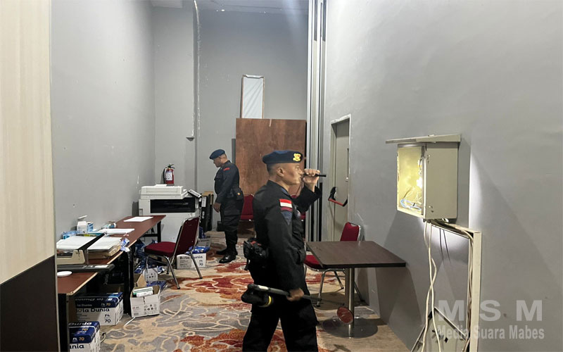 MediaSuaraMabes, Jayapura – Tim Gegana Sat Brimob Polda Papua melakukan sterilisasi lokasi Rapat Pleno Terbuka Rekapitulasi Hasil Penghitungan Suara Pemilu 2024 tingkat Provinsi di Papua bertempat di Hotel Horison Ultima Entrop Jayapura, Papua (11/03/2024). Sterilisasi dilakukan untuk menciptakan rasa aman dan nyaman terhadap pelaksanaan kegiatan Rapat Pleno Terbuka Rekapitulasi Hasil Perhitungan Suara Pemilu Tahun 2024 KPU Papua.
