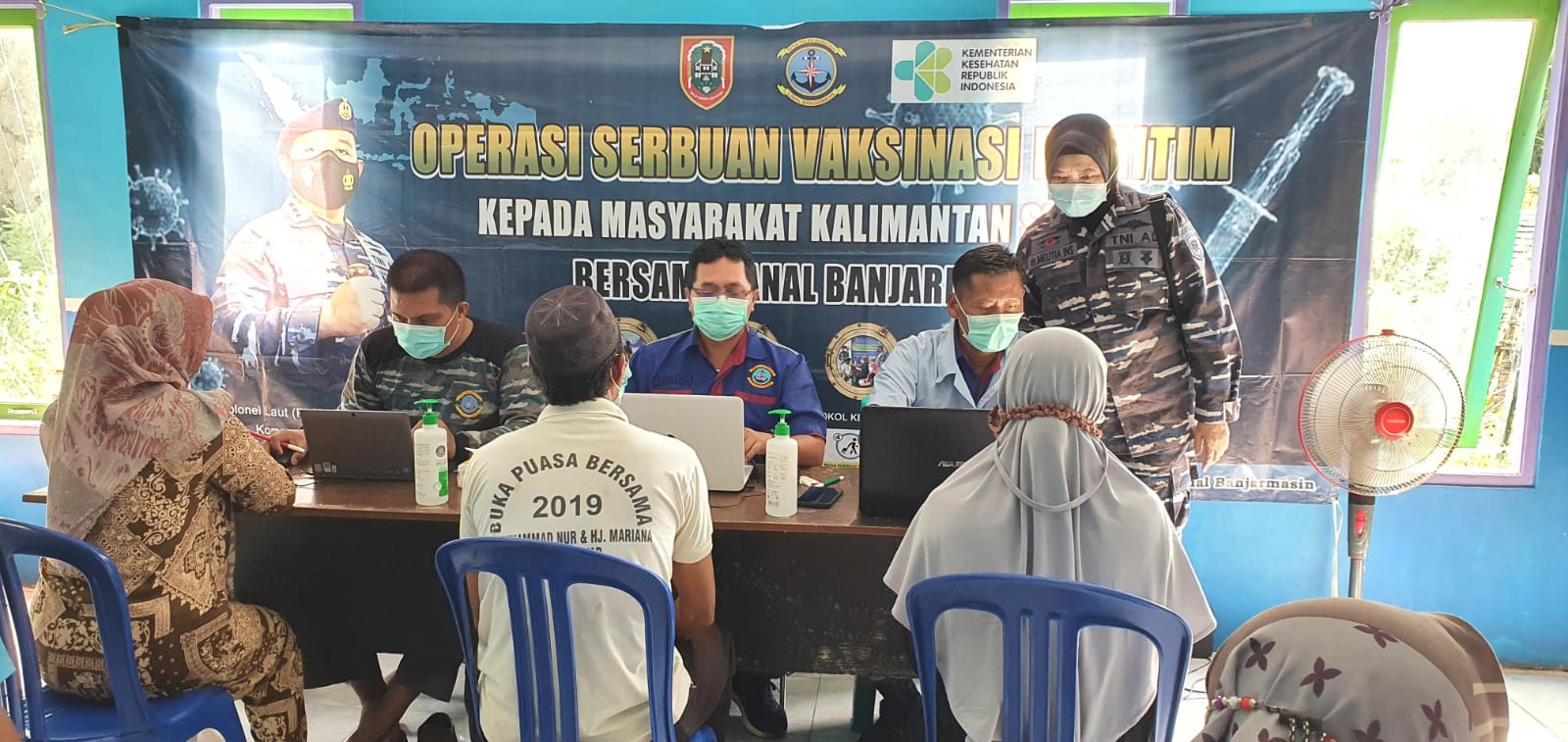 Sebanyak 13 Tim Vaksinator (Nakes) dari Balai Pengobatan (BP) Lanal Banjarmasin, dengan terapkan protokol kesehatan yang ketat dan sikap yang humanis telah sukses memvaksinasi 94 orang peserta dengan aman dan sehat menggunakan Vaksin jenis Sinovak.