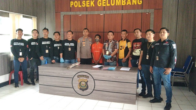 MediaSuaraMabes, Gelumbang (Muara Enim) – Polsek Gelumbang berhasil menangkap tersangka diduga pelaku pembunuh terhadap Ibu kandungnya, hal ini diungkapkan Kapolsek Gelumbang, Iptu Rendy Novriady STK, SIK, dalam jumpa pers, di Aula Mako Polsek Gelumbang pada Jumat (2/12/2022).
