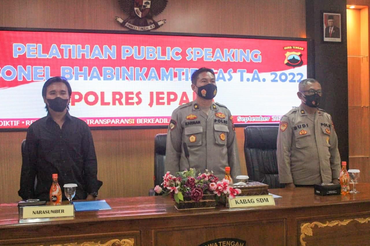 Rabu (14/09/2022) bertempat di aula endra Dharmalaksana Polres Jepara melaksanakan kegiatan Pelatihan Publik Speaking yang diikuti jajaran Bhabinkamtibmas.