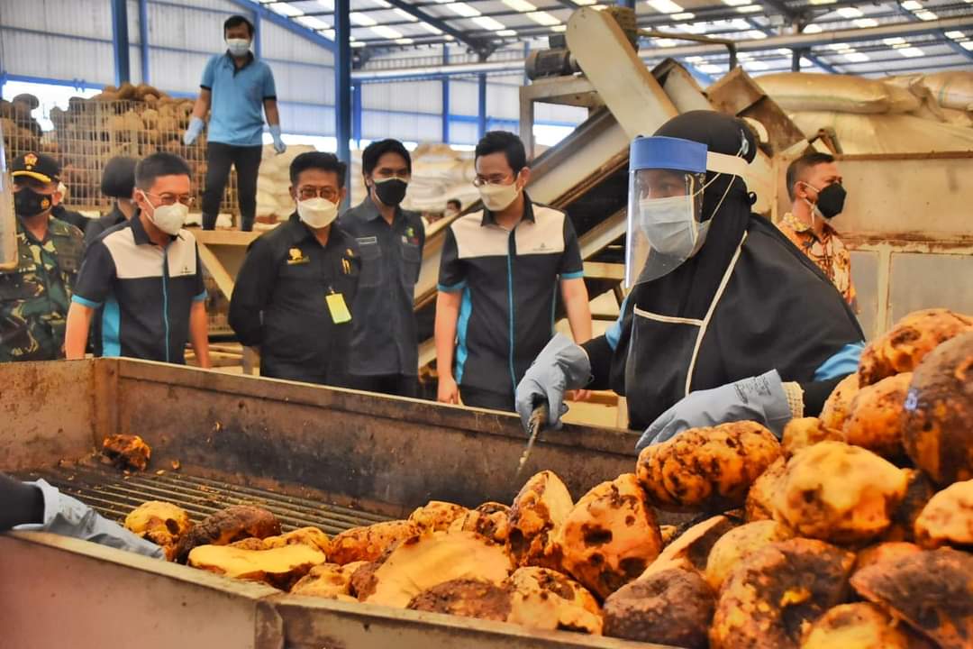 TINJAU KESIAPAN PANGAN DI KABUPATEN MADIUN, MENTERI PERTANIAN KUNJUNGI PABRIK PENGOLAHAN PORANG