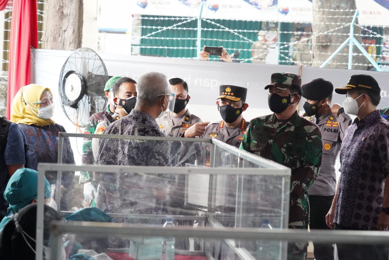 Selain meninjau pelaksanaan vaksinasi, Panglima TNI dan Kapolri juga melakukan sidak (inspeksi mendadak) dalam pelaksanaan PPKM Mikro di Kecamatan Bae, Kudus.