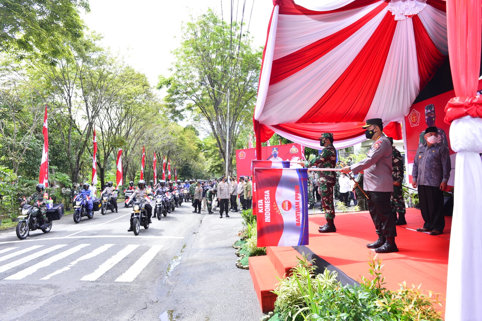 Dalam kegiatan ini juga akan dilakukan pelepasan 136 personel menggunakan 8 roda empat dan 120 roda dua yang akan membagikan bantuan sosial, dengan rincian 31 orang bhabinsa, 37 orang bhabinkamtibmas, 10 orang bhabinpotdirga (AU), 8 orang bhabinpotmar (AL), 50 orang relawan.
