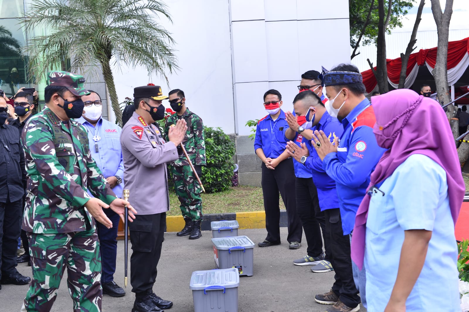 Selain vaksinasi, Panglima TNI dan Kapolri juga menyalurkan bantuan sosial (bansos) kepada buruh dan masyarakat untuk meringankan beban di tengah Pandemi Covid-19.