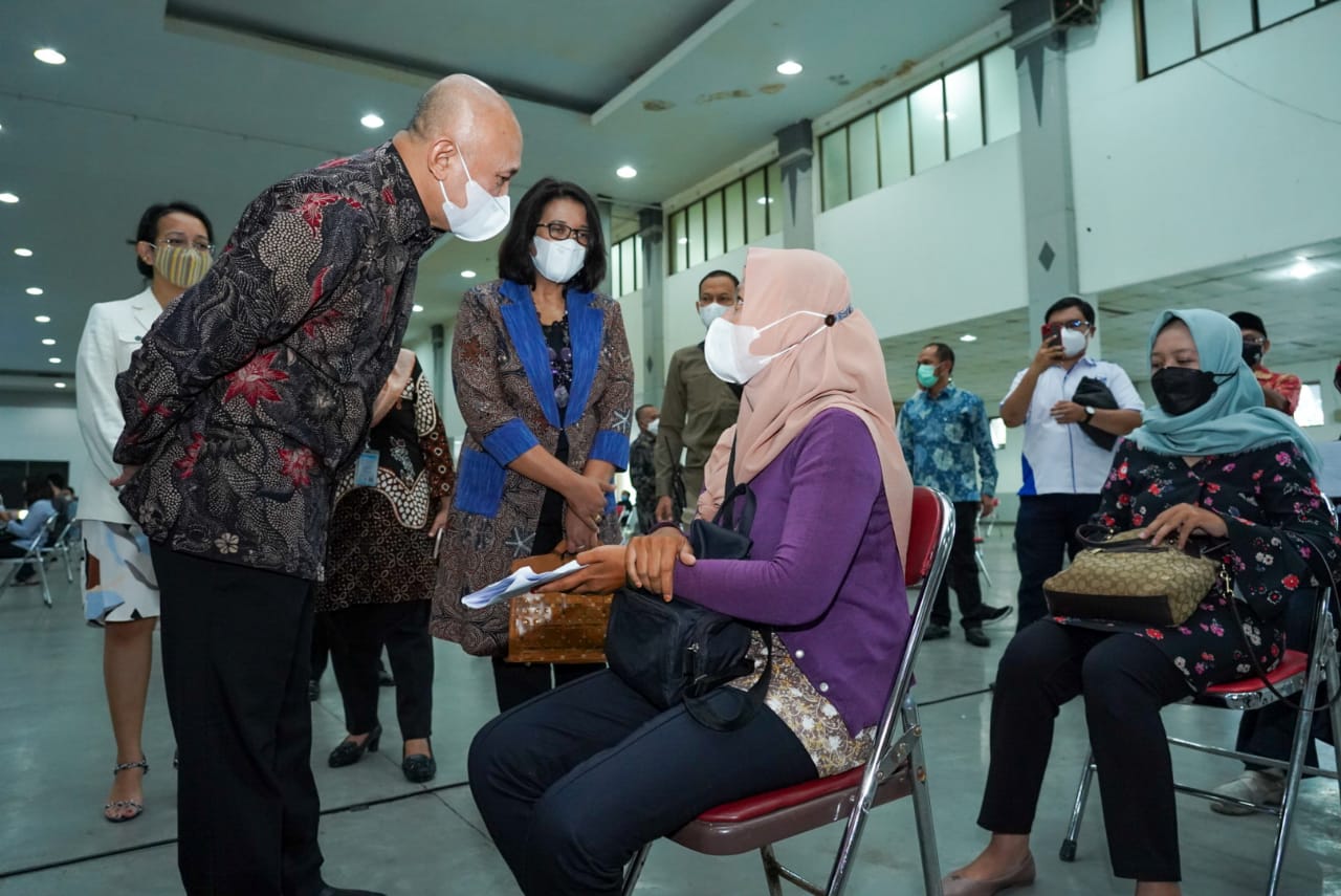 SuaraMabes, Yogyakarta —Menteri Koperasi dan UKM Teten Masduki meninjau proses vaksinasi terhadap pelaku UMKM di Yogyakarta. Kegiatan vaksinasi ini diadakan di gedung Jogja Expo Center, Yogyakarta, Kamis (8/4/2021), dengan diikuti oleh 523 pelaku UMKM, para Abdi Dalam, dan pelaku pariwisata dari Kabupaten/Kota Provinsi DIY.