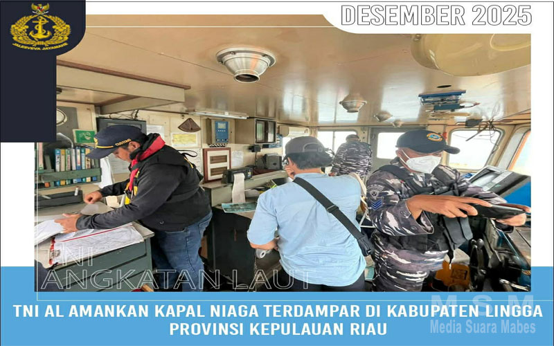 MediaSuaraMabes, Jakarta — TNI Angkatan Laut melalui Pangkalan TNI AL (Lanal) Dabo Singkep bersama instansi terkait mengamankan sebuah kapal niaga yang terdampar di perairan Pulau Pekajang, Kabupaten Lingga, Provinsi Kepulauan Riau. Sabtu (27/12).