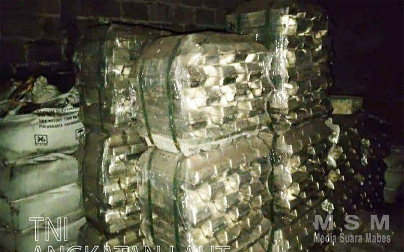 TNI AL Sita 134 Ton Timah Ilegal dari Gudang dan Smelter di Bangka