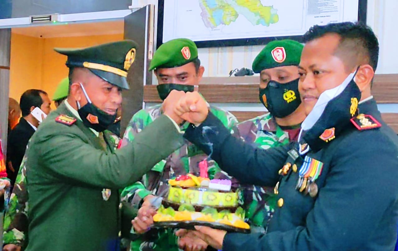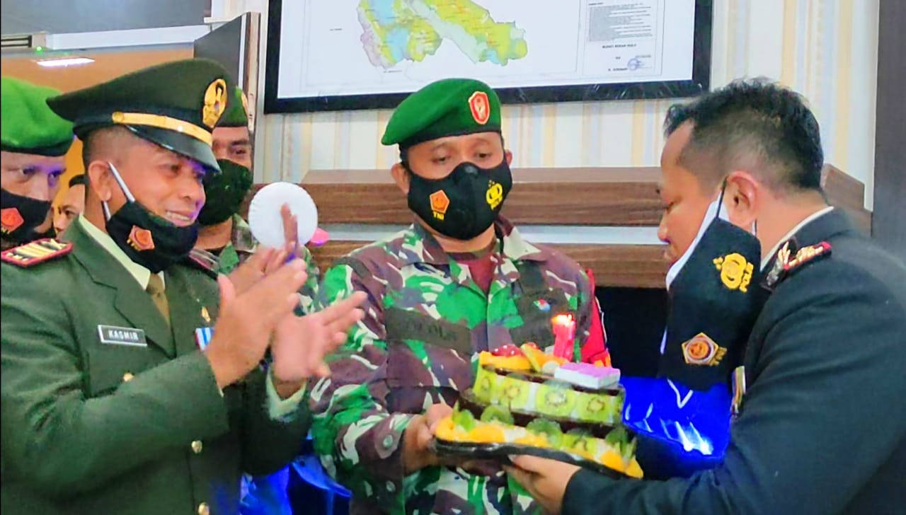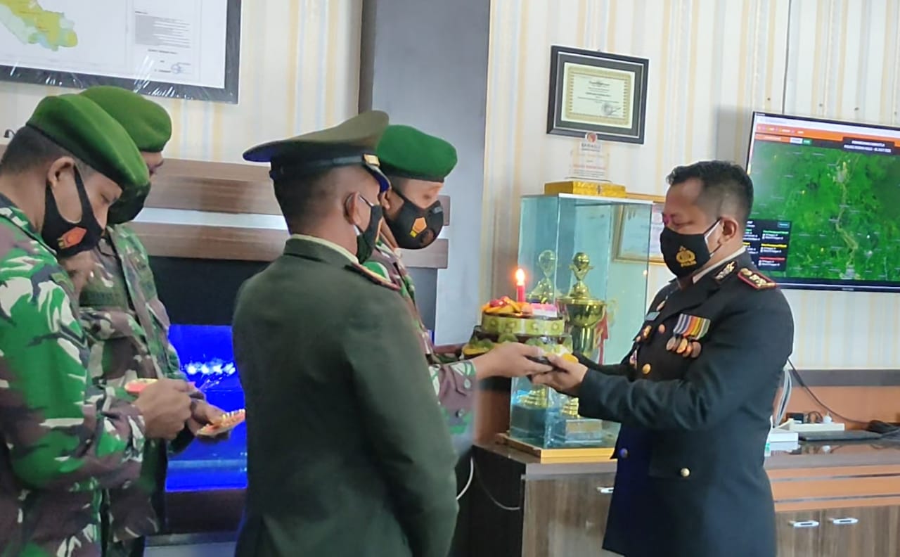 SuaraMabes, Rokan Hulu – Dalam rangka memperingati hari ulang tahun ke 75 Kepolisian Negara Republik Indonesia (Polri), puluhan personil TNI dari MaKoramil 02 Rambah Kodim 0313/KPR memberikan kejutan ulang tahun untuk Polri.