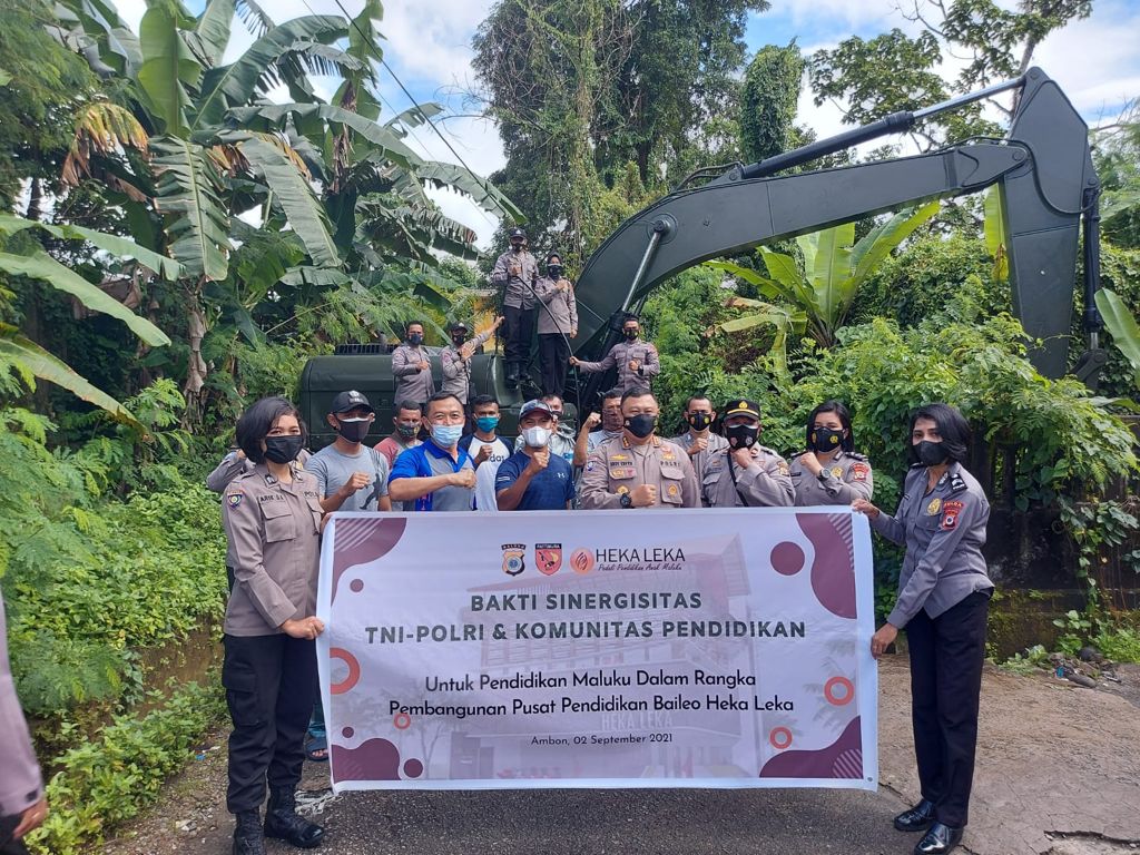 MediaSuaraMabes, Ambon – TNI-Polri dan Komunitas Pendidikan bersinergi melaksanakan Karya Bakti pembersihan lokasi Baileo Taman Baca Heka Leka, bertempat di Wailela atas Negeri Rumah Tiga Kec. Teluk Ambon, Kamis (02/09/2021).