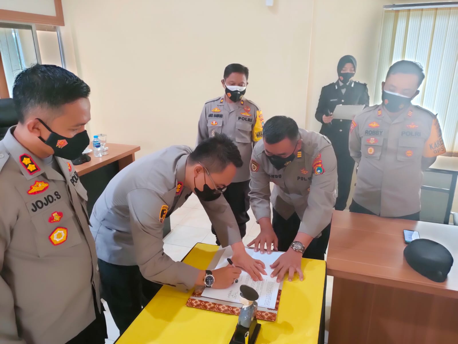 Dalam kurun waktu tersebut ada beberapa peningkatan kinerja yang telah kita capai, khususnya pada bidang pelayanan publik serta zi, meskipun WBK belum terwujud, muda-mudahan ditangan Kapolres yang baru, kerja keras rekan-rekan untuk WBK dapat tereleasisasi”.