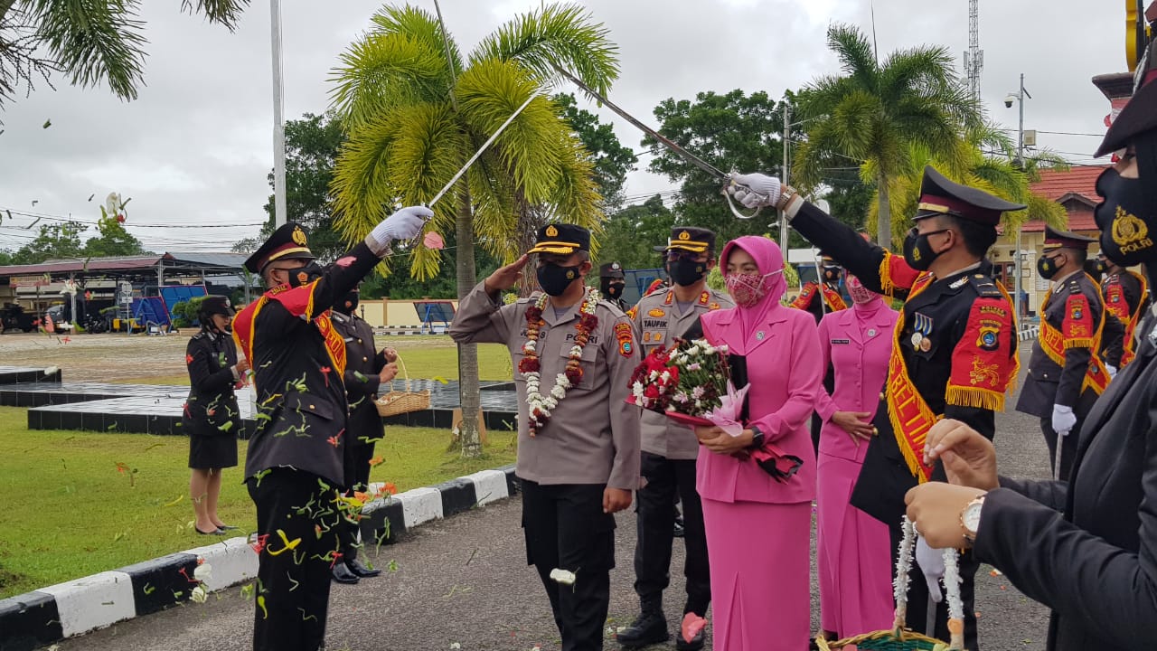 Kegiatan dilanjutkan laporan Kesatuan dari Kapolres lama kepada kapolres baru, dilanjutkan dengan farewell AKBP Jojo Sutarjo, SIK, MH besera isteri dengan tradisi Pedang Pora, tampak suasana haru saat melepas kepergian AKBP Jojo Sutarjo, SIK, M.H.