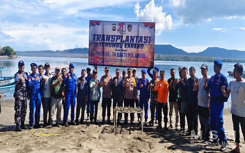 MediaSuaraMabes, Gilimanuk Bali – Dalam rangka memperingati Hari Ulang Tahun (HUT) Polairud ke-74, Polsek Kawasan Pelabuhan Gilimanuk, Poljes Jembrana, Polda Bali, mendukung kegiatan Sat Polairud Polres Jembrana menggelar kegiatan transplantasi terumbu karang di perairan Teluk Gilimanuk. Kegiatan ini berlangsung di kawasan Water Be, Lingkungan Jineng Agung, Kelurahan Gilimanuk, pukul 09.00 WITA, Selasa ((19/11/2024).